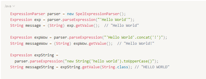 Spel Parser는 ""안에 들어가있는 문자열을 평가(evaluation)해서 결과 값을 만들어 낸다.