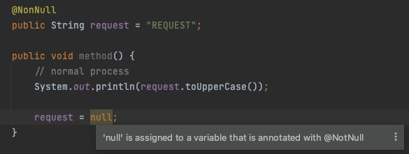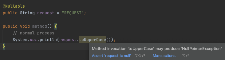 위 코드에서 만약 request가 null이면 NPE가 뜬다.