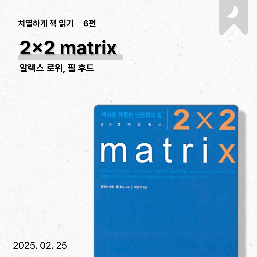 (6) 치열하게 책 읽기 - 2x2 매트릭스일/책2025. 2. 26. 04:42